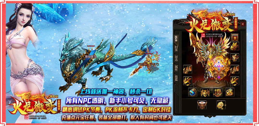 内容介绍:适合各类散人发展,元宝装备超好打,账号保值回收,勤劳铸就王者!
